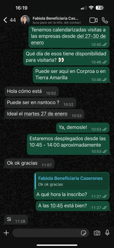 Llamada para coordinar visita a terreno durante la semana del 26/01
