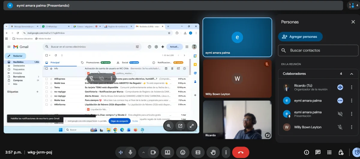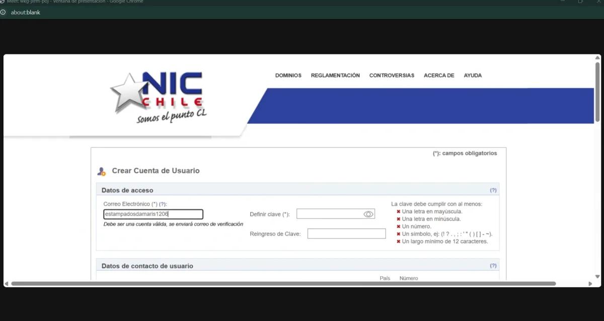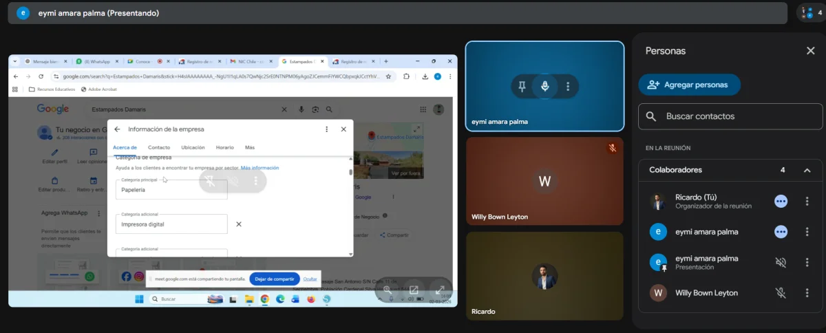 Se realiza reunión online para asesorar en la compra del dominio empresarial a través de nic.cl con el fin de poner en producción la página web de la empresa.
